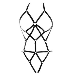 Entdecke den BBOHSS Damen Body Harness BH Set, ein vielseitiges und stilvolles Punk Strap Unterwäsche Set, das sich perfekt als Gothic Carnival Kleidung Zubehör eignet. Das Set ist in klassischem Schwarz gehalten und bietet dir die Möglichkeit, deine Outfits auf ein neues Level zu heben.