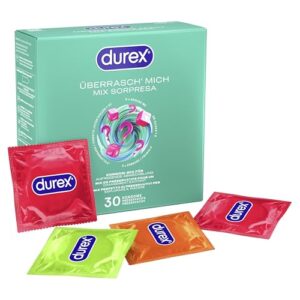 Entdecke den Durex Überrasch Mich Kondome-Mix, eine innovative Mischung aus 30 Kondomen in vier verschiedenen Sorten. Diese Packung ist ideal für alle, die Abwechslung in ihr Sexualleben bringen möchten. Die diskrete Lieferung sorgt dafür, dass niemand erkennen kann, was sich in der Umverpackung befindet.