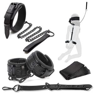Entdecke das 5 in 1 Bondage Fesseln Sex Set, ein umfassendes BDSM Toys Set, das speziell für Paare entwickelt wurde, die ihre erotischen Fantasien erkunden möchten. Dieses Set umfasst alles, was du für aufregende Bondage-Spiele benötigst: Handschellen, ein Halsband, eine schwarze Satin-Augenbinde, ein Sicherheitsband und ein Kettenband. Ideal für SM-Anfänger und Enthusiasten, bietet dieses hochwertige Sexspielzeug die Möglichkeit, prickelnde Sexspiele zu genießen.