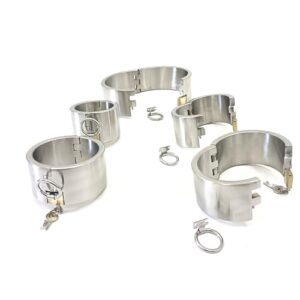 Das Set besteht aus einem stabilen Halsband, Handfesseln und Fußfesseln, die für Männer, Frauen und Paare geeignet sind. Jedes Teil ist aus hochwertigem, ungiftigem und geschmacksneutralem Metall gefertigt, was für maximale Sicherheit während des Spiels sorgt. Mit diesem Bondage Kit kannst du jeden Raum in einen Sex-Dungeon verwandeln und deine Fantasien ausleben.